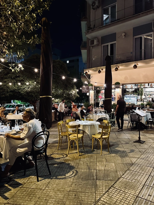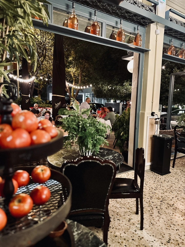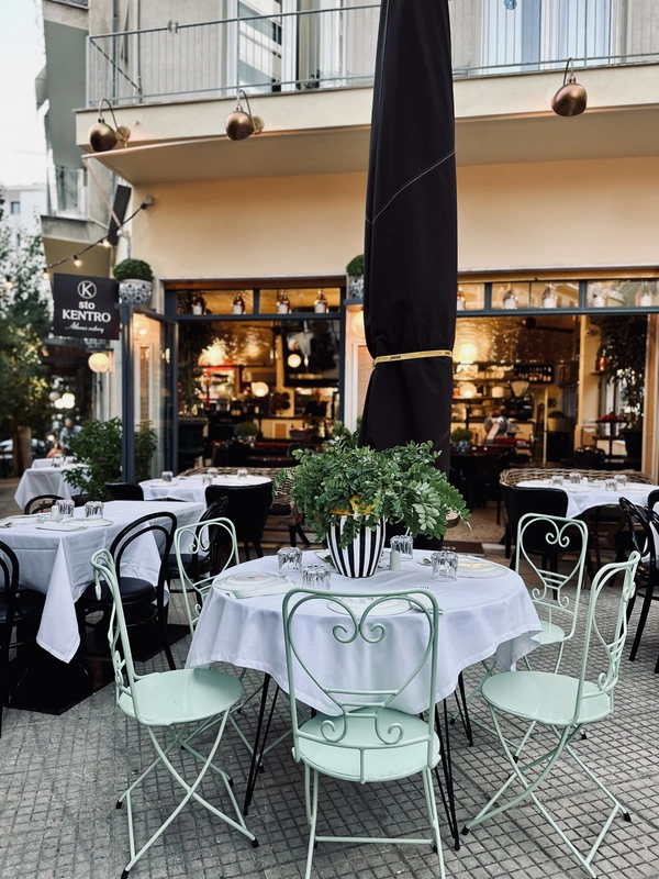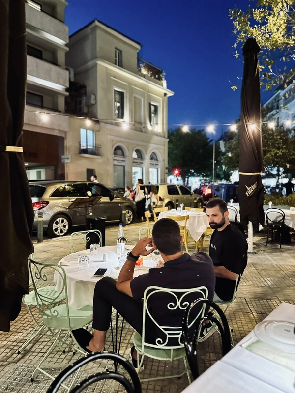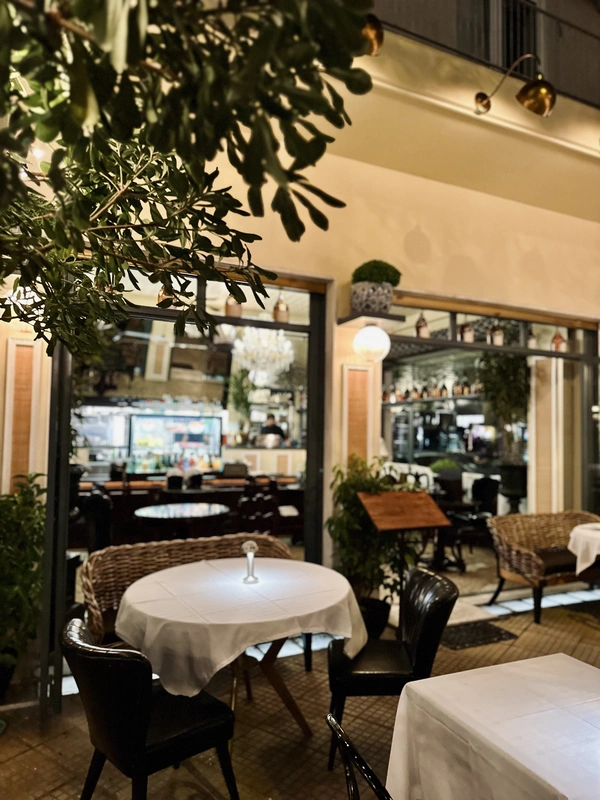 Ο εξωτερικός μας χώρος απλώνεται στο πεζοδρόμιο, κάτω από τα δέντρα και τα φώτα της πόλης, με προσεγμένα στρωμένα τραπέζια, ιδανικά για όλες τις ώρες της ημέρας. Είτε πρόκειται για ένα ήρεμο μεσημεριανό γεύμα, είτε για ένα ρομαντικό δείπνο κάτω από τα φώτα, η ατμόσφαιρα είναι πάντα ζεστή, αυθεντική και αθηναϊκή.