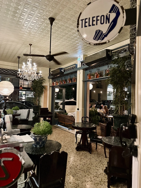 Το “Στο Κέντρο Athens Eatery” διαθέτει έναν φιλόξενο εσωτερικό χώρο με ρετρό πινελιές και διακριτική κομψότητα, όπου κάθε λεπτομέρεια —από τον παλιό περιστροφικό τηλεφωνικό θάλαμο μέχρι τους φωτισμούς και τα χρώματα— έχει επιλεγεί με αγάπη για να προσφέρει μια εμπειρία που ξεχωρίζει.